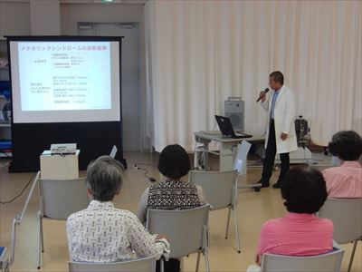 10名の参加者に対して、本学部リハビリテーション学科の明﨑講師から“メタボリックシンドロームについて“の講義が行われました。参加の皆様はとても熱心に聞かれておられました。