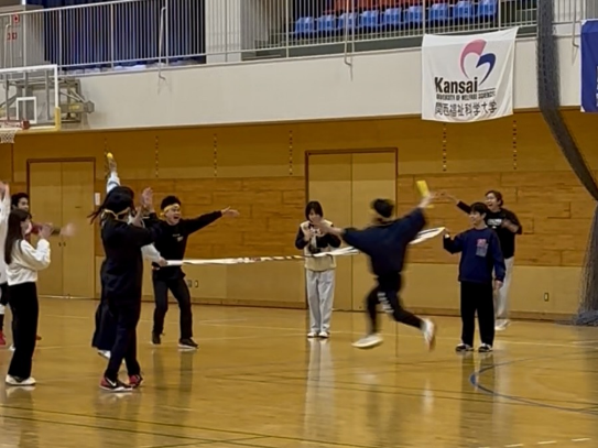 理学療法学専攻、作業療法学専攻、言語聴覚学専攻の3専攻でスポーツ大会を開催しました。ドッジビー(フライングディスクを使ったドッジボール)、大縄、リレーなどを通じて専攻の垣根を越えた親睦を深めました。