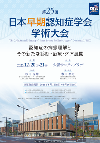 2025年12月20日(土)・21日(日)、福岡県久留米市の久留米シティプラザにて開催された「第25回日本早期認知症学会学術大会」(テーマ:認知症の病態理解とその新たな診断・治療・ケア展開)において、理学療法学専攻の教員が参加しました。